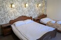 Двухместный номер – это комфортный номер с двумя односпальными или одной двуспальной кроватью. Расположение номеров на с 2 по 4 этаж. Напольное покрытие – ковролин. В номере имеется холодильник, телевизор, кондиционер сплит-система, фен, шкаф для одежды, прикроватные тумбочки, рабочий стол. В номере собственный санузел, в котором установлена небольшая ванна. Номера комплектуются набором полотенец на каждого гостя (банное, лицевое и полотенце для ног). В ванной комнате есть косметические принадлежности: мыло, шампунь, гель для душа. В номере есть небольшой узкий балкончик без мебели, с сушилкой для белья. В номере без предоставления дополнительного места и без дополнительной оплаты может проживать один ребенок в возрасте до 4 лет.