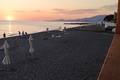 Узкая полоса пляжа вдоль ж/д но вполне уютно и у отеля свой бесплатный участок с лежаками и бесплатной водой, пляж галька каменистый. Всего два лифта на 8 этажей и час пик напряженно. Бассейн мелковат примерно 1, 5-1, 6м и не такой большой как хотелось бы но лежаков очень много Ресторан и завтраки дороговат, меню скучновато и на любителя, но рядом куча альтернатив на любой выбор.