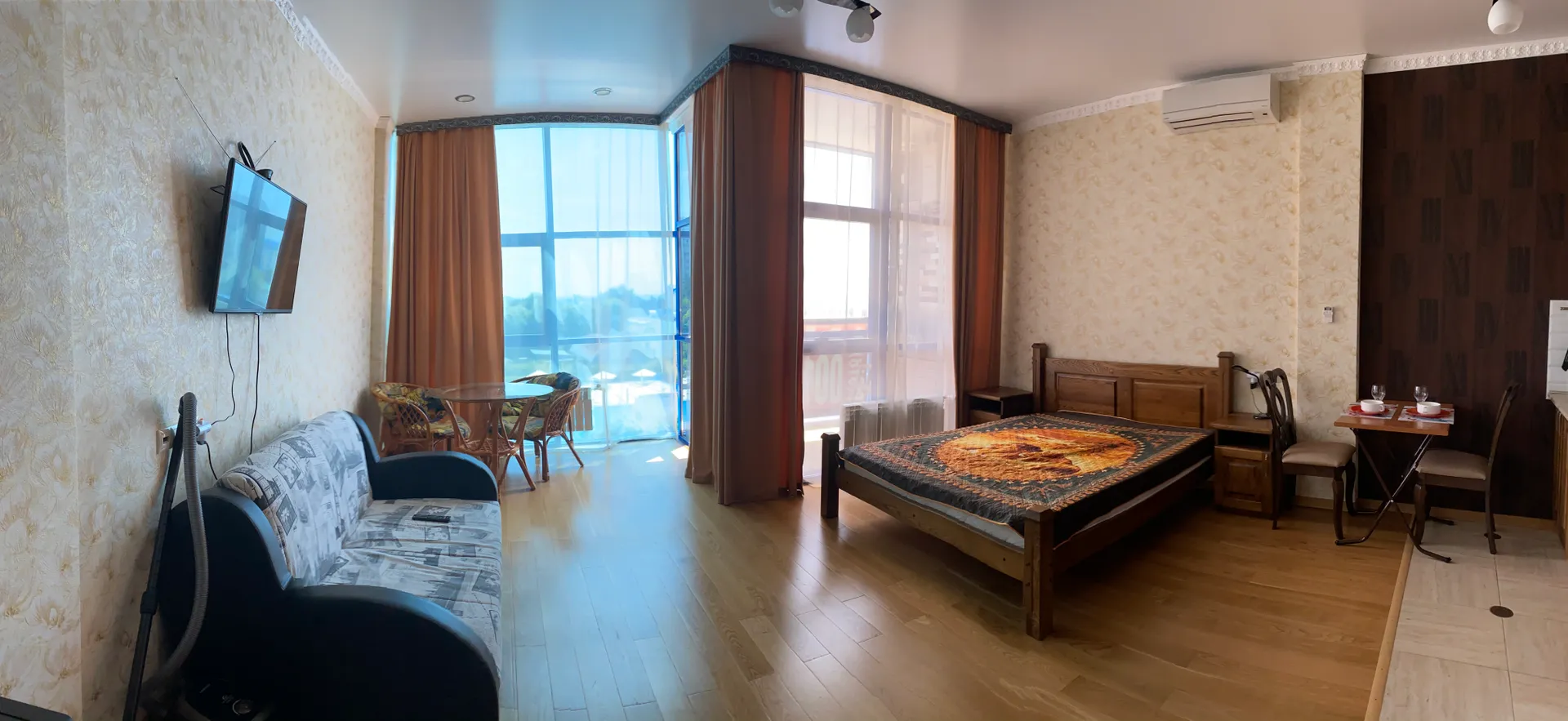 отличная квартира, уютно и чисто. Все развлечения и досуг рядом, море в пешей доступности, буквально 50-100м.