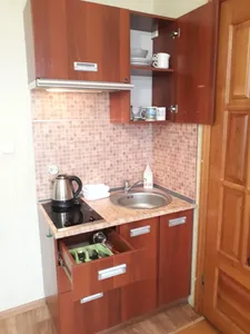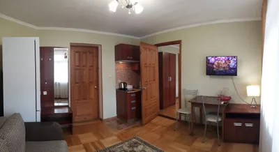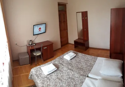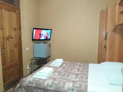 комната на третьем этаже. Чисто. Телевизор и шкаф в комнате. Туалет и чайник на этаже. На первом этаже есть кухня
