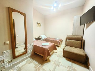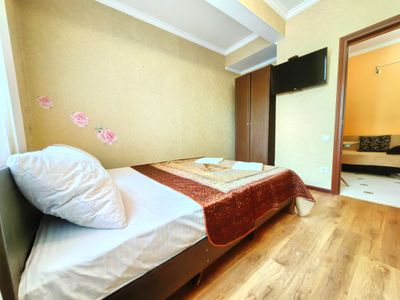 Номер понравился, очень просторно, чисто. До пляжа 5 минут. Все необходимые магазины в шаговой доступности. Администратор Любовь очень приятная девушка, по любому вопросу поможет и подскажет. Спасибо большое за чудесный отдых!