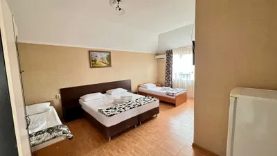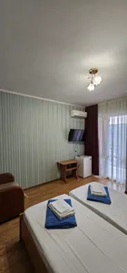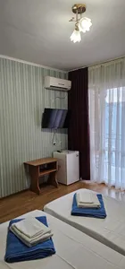 Гостевой дом Сангрия состоит из двух корпусов, каждый номер оснащен ванной комнатой, кондиционером и холодильником. На территории есть общая кухня. До моря пешком 15 минут. Рядом столовые и магазины