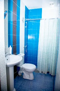 Постоянный неприятный запах в туалетной комнате, 1 электрическая розетка, расположена слишком высоко, постельное белье из искусственной ткани.