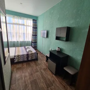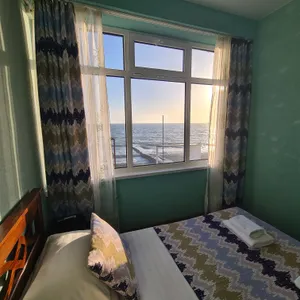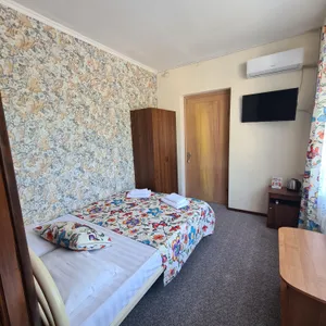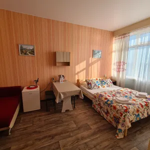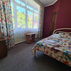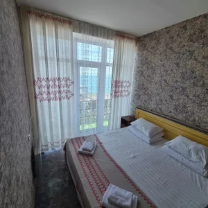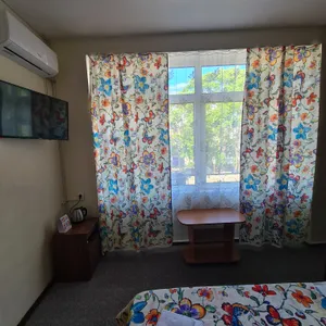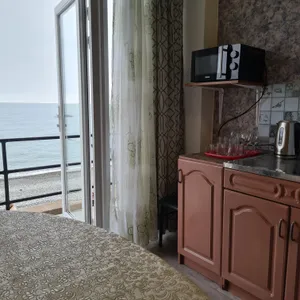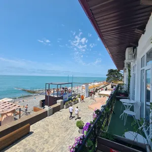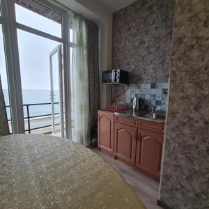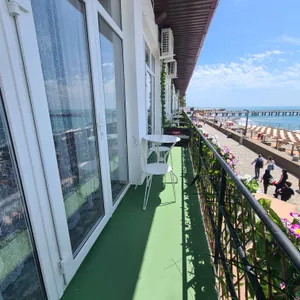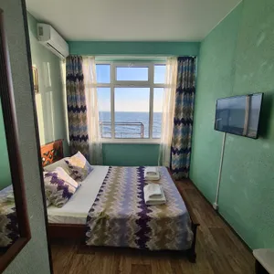 расположение 🔥. первая береговая линия. утром просыпаешься под шум волн. окна понарамные и море постоянно перед глазами. вечером конечно шумновато, так как под окнами набережная. на пляж можно ходить в купальнике , вышел и уже на пляже. в комнате немного уже все устарело. номер просит свежий ремонт. в душевой тоже бы ремонт. а так не критично, мы ехали чтоб любоваться на море из окна.администратор очень приятная женщина.