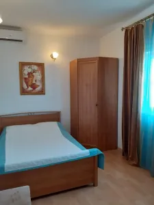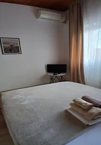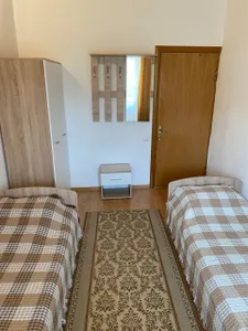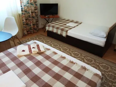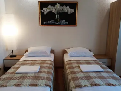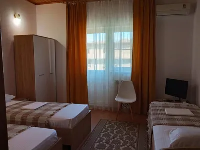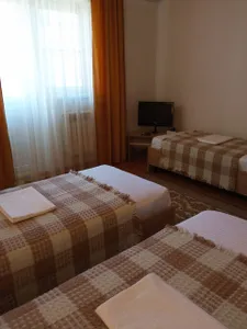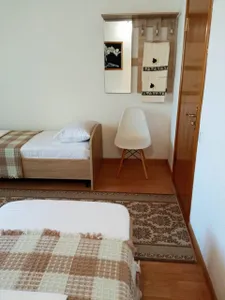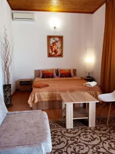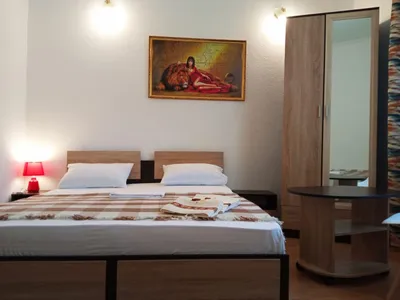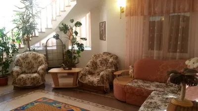 Очень отзывчивая и вежливая хозяйка. Дом в прекрасном состоянии: чисто, уютно, красиво. Прекрасная веранда, где можно выпить чай или перекусить, большая зона с обеденными столами, есть кухня, пруд на территории с лебедями и утками. Комната мне досталась другая (не та, что на фото), но не менее уютная. Постельное белье чистое, полотенца тоже, есть кондиционер, выход на балкон, шкаф, стол с зеркалом, стул, стаканы для воды, телевизор. Жила на 2 этаже. Душ и туалет 1 на 3 комнаты (меня устраивало это). В пешей доступности продуктовые магазины, пункты выдачи озон и вб. До остановки 15-17 минут, до моря минут 25-30.