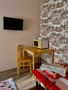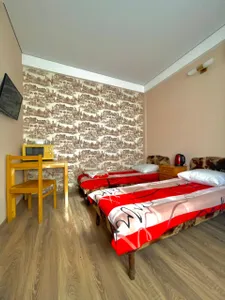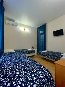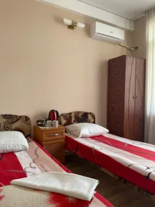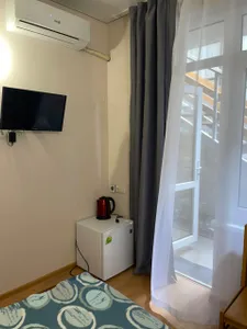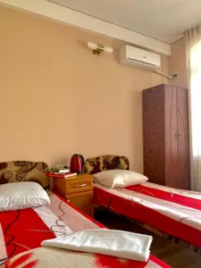 Во всех номерах имеются: с/у и душ, TV, Wi-Fi, кондиционер, мини- холодильник, чайник, микроволновая печь (при заселении от 14 дней), фен по запросу.