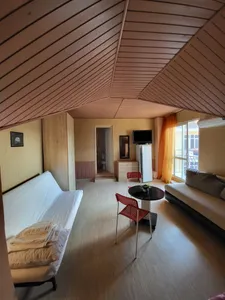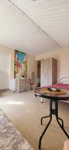 В номерах душ, туалет, кондиционер, холодильник, телевизор, двуспальная кровать, раскладной диван, маленький балкон. Уборка после заселения по желанию за дополнительную плату!