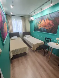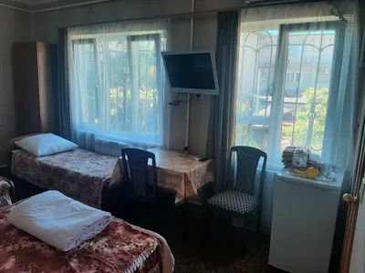 Идеальная хозяйка, супер идеальная чистота, холодильник маленький и идеально чистый без посторонних запахов, чистота является основным преимуществом, лично для меня, остальное мелочи, вода горячая бежит без нареканий, кухня общая есть со всем необходимым, но я не пользуюсь, как и стиральной машиной, которая также имеется, если кому-то это важно, колоритный южный двор с пальмами добавляет настроение, вдали от шума тихо и спокойно, те кто ищет вечеринки, лучше искать не столь уютное место, где все отдыхают и никто никому не мешает, и кстати большая стойка для сушки белья и полотенец- место хватает всем гостям, спасибо