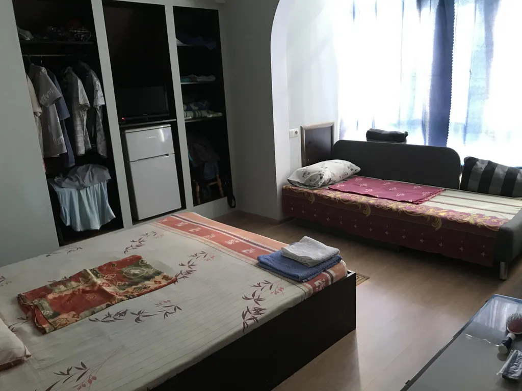 Просторный номер, всё есть, холодильник, кондиционер, телевизор, туалетный столик, диванчик на балконе, чайник на этаже, полотенец много, шампуни, во дворе спорткомплекс