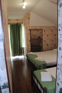 В гостевом доме. Скоротать вечер или приятно провести время перед сном в уютной атмосфере можно в баре. Время вспомнить о хлебе насущном! Для гостей работает ресторан. Кафе гостевого дома — удобное место для перекуса. Общая кухня оборудована для самостоятельного приготовления пищи. Гости могут выбирать между полным пансионом и полупансионом. На территории работает