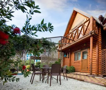 На территории отеля есть буфет, где проходит завтрак (в зимнее время с 8: 00 до 10: 00 по меню, в летнее время с 7: 30-10: 00 по системе шведского стола) площадка для барбекю, а также сад и детская игровая
