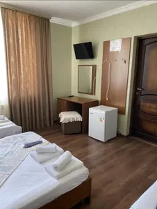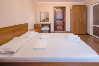 Плохо, что санузел не в номере. Мало розеток, около кровати не было розеток. У одной из кроватей не было тумбочки. Наш двухместный номер заменили на «четырёхместный», но для четырёх человек номер был бы явно тесным, это двухместный номер, в который запихнули большую кровать и кровать поменьше и раскладывающееся кресло. Комары ночью кусали, и было душно. Далековато от моря.