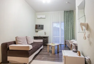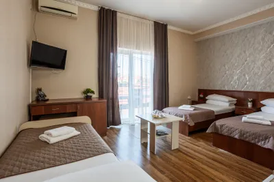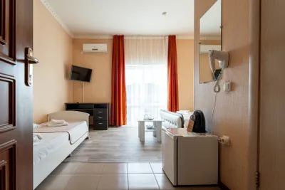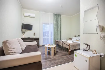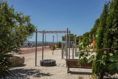 Несколько плюсов, есть парковка оплачивается отдельно, расположение очень близко от моря, в кафе для проживающих скидки, персонал вежливый и доброжелательный.