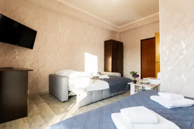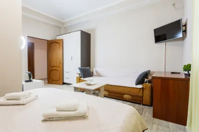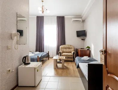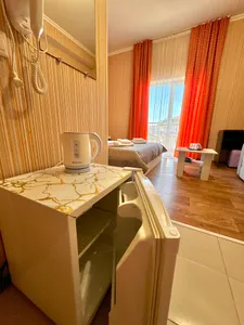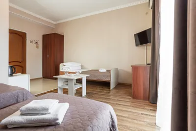 Чистый, уютный гостевой дом. Уборка номера, смена полотенец и белья — всё как заявлено, Юлечке спасибо! Wi-Fi иногда пропадал, но для нас это было не критично. Месторасположение отеля замечательное, пляж рядом, кафе, столовые, магазины. На прощание нам сказали: «Приезжайте ещё, мы вам рады!» Ирина, спасибо! Отдохнули замечательно, в том числе благодаря вам!