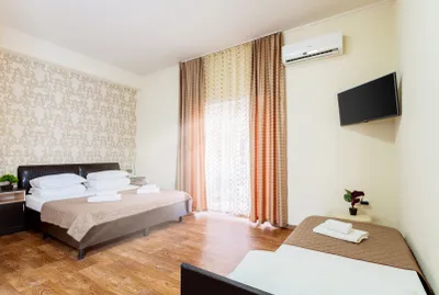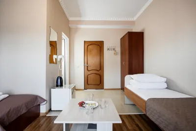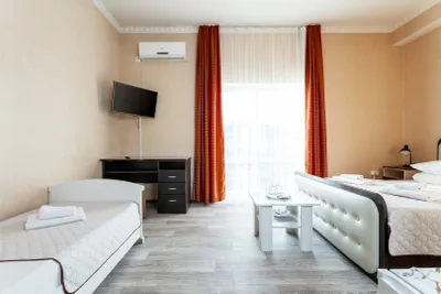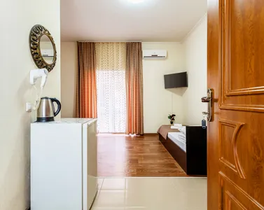 Для размещения в гостевом доме Лотос вы можете выбрать один из 2-х и 3-х местных номеров со всеми удобствами: телевизором, холодильником, кондиционером и собственной ванной комнатой; 4-х местный двухкомнатный полулюкс. Также у нас есть двухкомнатный люкс со стиральной машиной, витражными окнами, кухней и обеденной зоной, в котором у вас будет возможность готовить еду самостоятельно. Уборка в номерах, смена постельного белья и полотенец производится регулярно. В пользование гостям предоставляется гладильная доска, За дополнительную плату вы можете взять напрокат велосипед. С удовольствием поможем вам совершить экскурсионный маршрут по Сочи, Адлеру, Красной поляне и Абхазии. Автостоянка платная 400р/сутки. Мы заботимся не только об уюте и комфорте своих гостей, но и об их безопасности, поэтому территория гостевого дома Лотос огорожена и находится под охраной. Кафе, столовые и рестораны в шаговой доступности – не утруждайте себя во время отпуска, отдохните по полной.