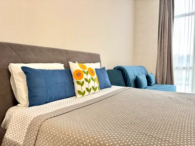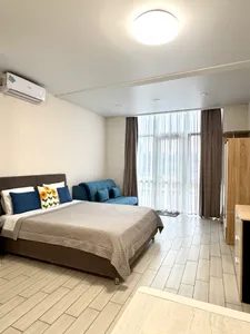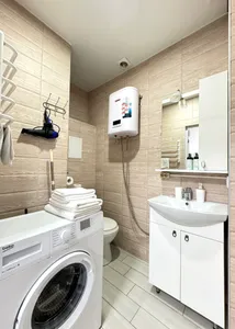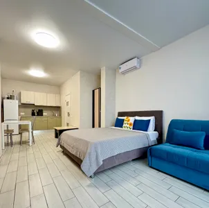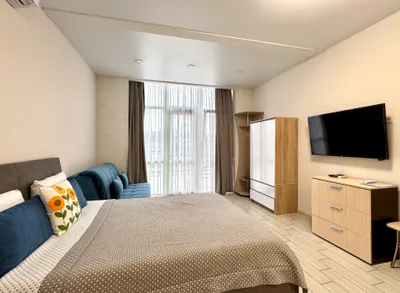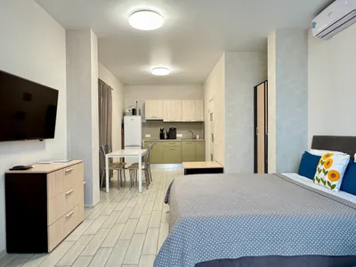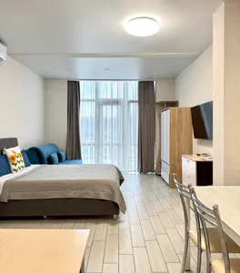Очень понравились апартаменты, все современно, чисто и комфортно! Очень удобная кровать, блаженство для позвоночника. Телевизор большой, хороший. Белоснежное белье. В отличном состоянии посуда. Стиральная машинка выручала. Обязательно вернемся еще.